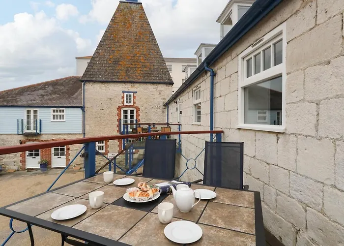 The spacious 145 m^2 Spindrift Apartment Weymouth provides easy access to various city attractions, such as Weymouth Pavilion Theatre, situated merely a 5-minute walk away.